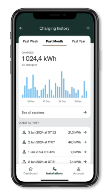 Altijd volledige controle, inzicht en aansturing via de Zaptec app.